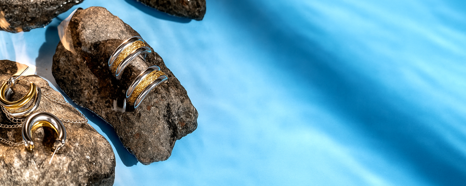 Our pieces are crafted from high-quality, skin-friendly metals like gold plated and silver plated stainless steel and alloys, that are hypoallergenic and safe for daily wear.